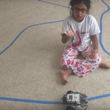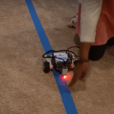 This is awesome project with simple coding but more fun. In this project we used color sensor to detect light. We compared light reflected back from blue tape and carpet, this helped to define our threshold to complete this project. Click on the link to go through details.